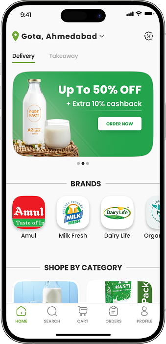 Offer a dedicated mobile app for customers to subscribe, order, and track dairy deliveries. Features include secure checkout, push notifications for subscriptions and promotions, high-quality product images, and real-time order tracking. Deliver convenience and improve customer retention with a seamless app experience.